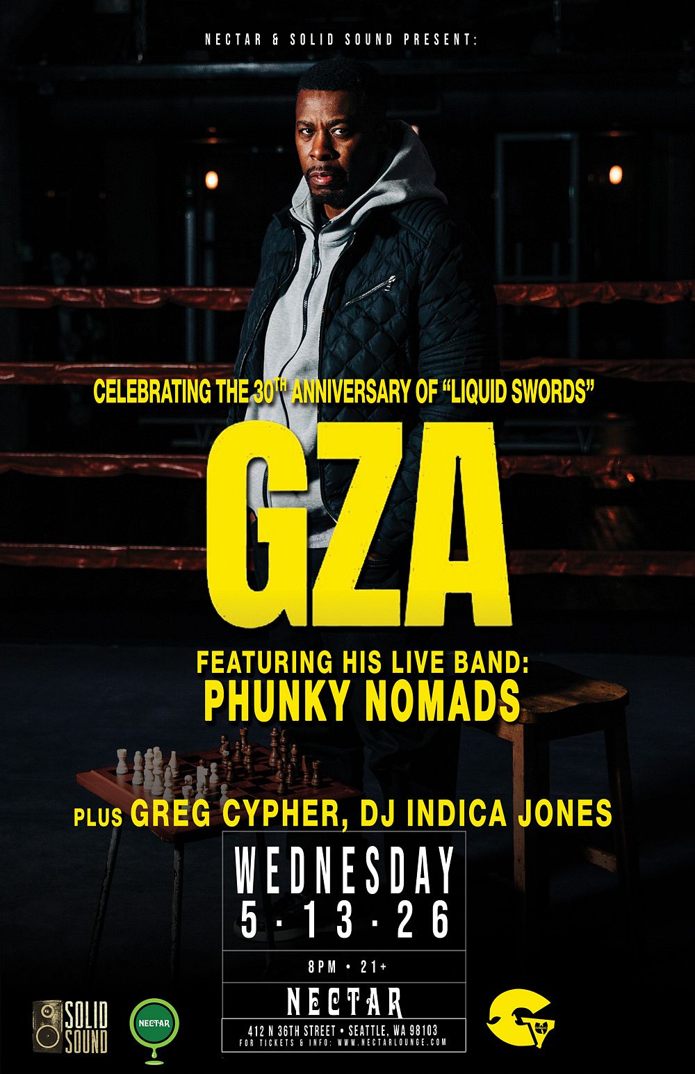 *Rescheduled* GZA featuring Phunky Nomads, plus Greg Cypher, DJ Indica Jones